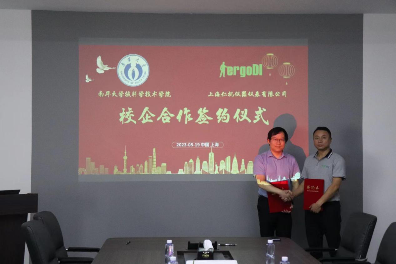 雙方簽署《上海仁機儀器儀表有限公司與南華大學核科學技術學院校企合作協議》。