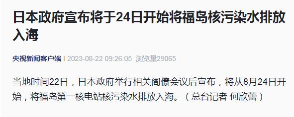 據央視新聞消息,當地時間22日,日本首相岸田文雄宣布,日方將于本月24日開始將福島第一核電站的核污染水排入大海。岸田還表示,相關工作已進入最后階段。據悉,日本福島核電站已經產生了130多萬噸核污染水,目前每天新產生的核污染水約有100噸,預計向海洋排放的時間將長達30年。