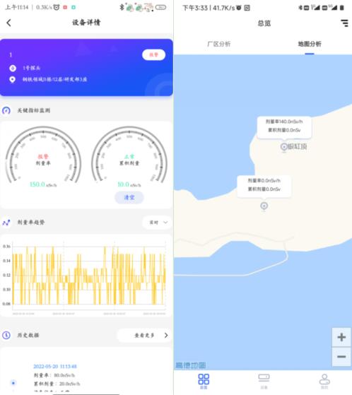 5、設備安裝位置自定義,可通過布局圖、地圖實時顯示劑量率