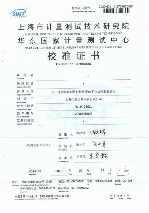JJF 1687-2018用于探測與識別放射性核素的手持式輻射監測儀校準規范